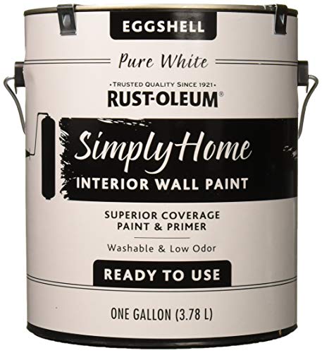 Rust-Oleum is a name DIYers know for reliable coatings. Simply Home Eggshell Pure White aims for a clean, neutral white that feels modern. The eggshell sheen helps with light bounce while hiding minor texture. It applies smoothly and has easy water cleanup.